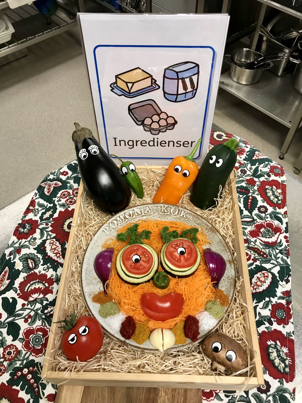 Här på Pomona förskola vet barnen var maten kommer ifrån och vad som finns i maten. Med roliga ingredienstallrikar visar jag barnen innan lunch vilka ingredienser och råvaror jag använt till den dagens lunch som vi sedan tillsammans provsmakar och utforskar genom at dofta, känna och titta. Jag använder mig av dessa tallrikar främst vid nya komponerade maträtter som t.ex biffar, grytor och växtbaserat. Även på avdelningarna har man använt olika ingredienser som ett läroprojekt.